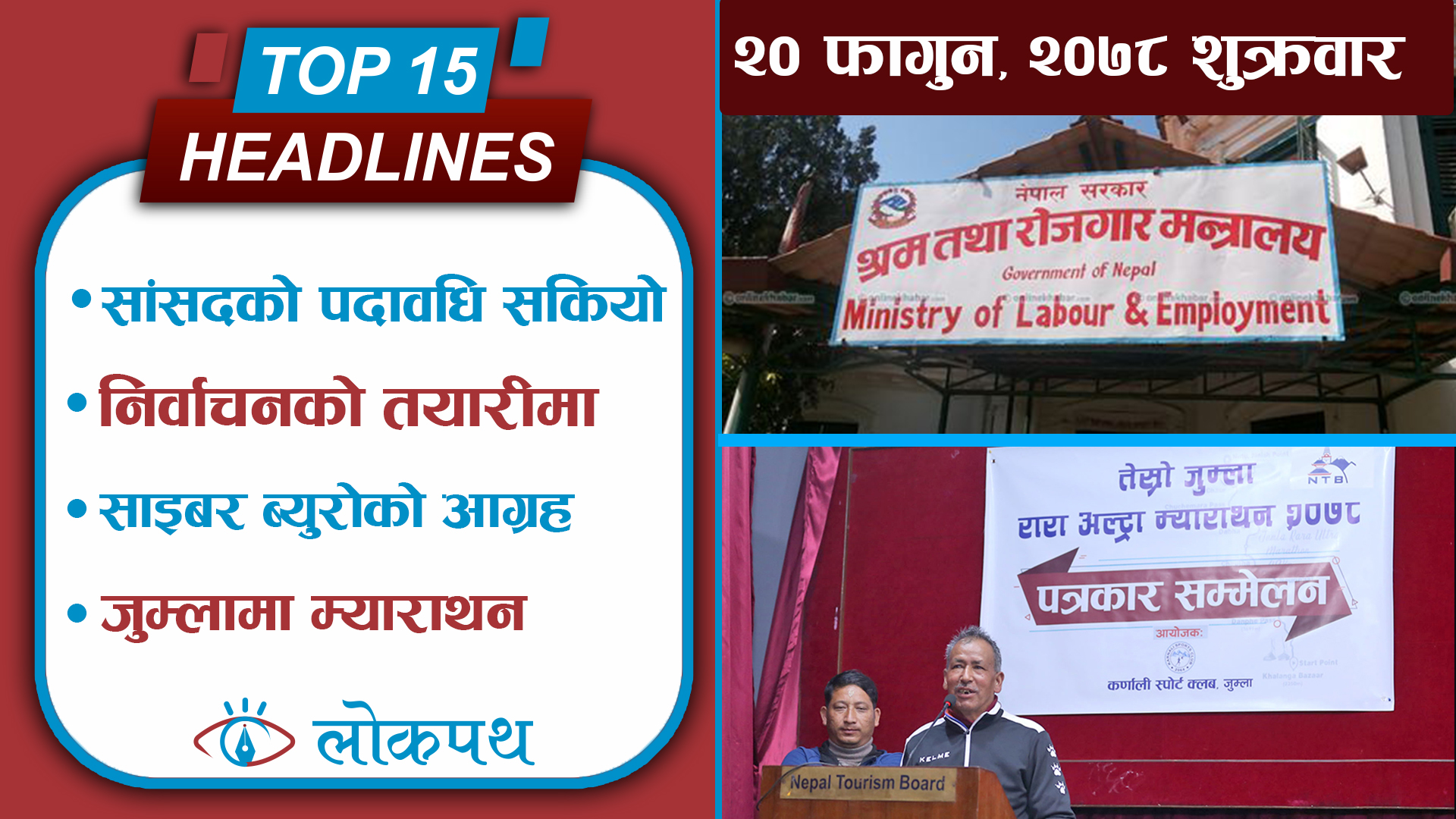 १४. जुम्ला–रारा अल्ट्रा म्याराथन २०७८’ चैत २६ गतेदेखि हुने, समुद्री सतहबाट दुई हजार ३ सय मिटरको उचाइमा रहेको जुम्ला सदरमुकामदेखि मुगुको रारा ताल पुगेर म्याराथन समापन हुने ।