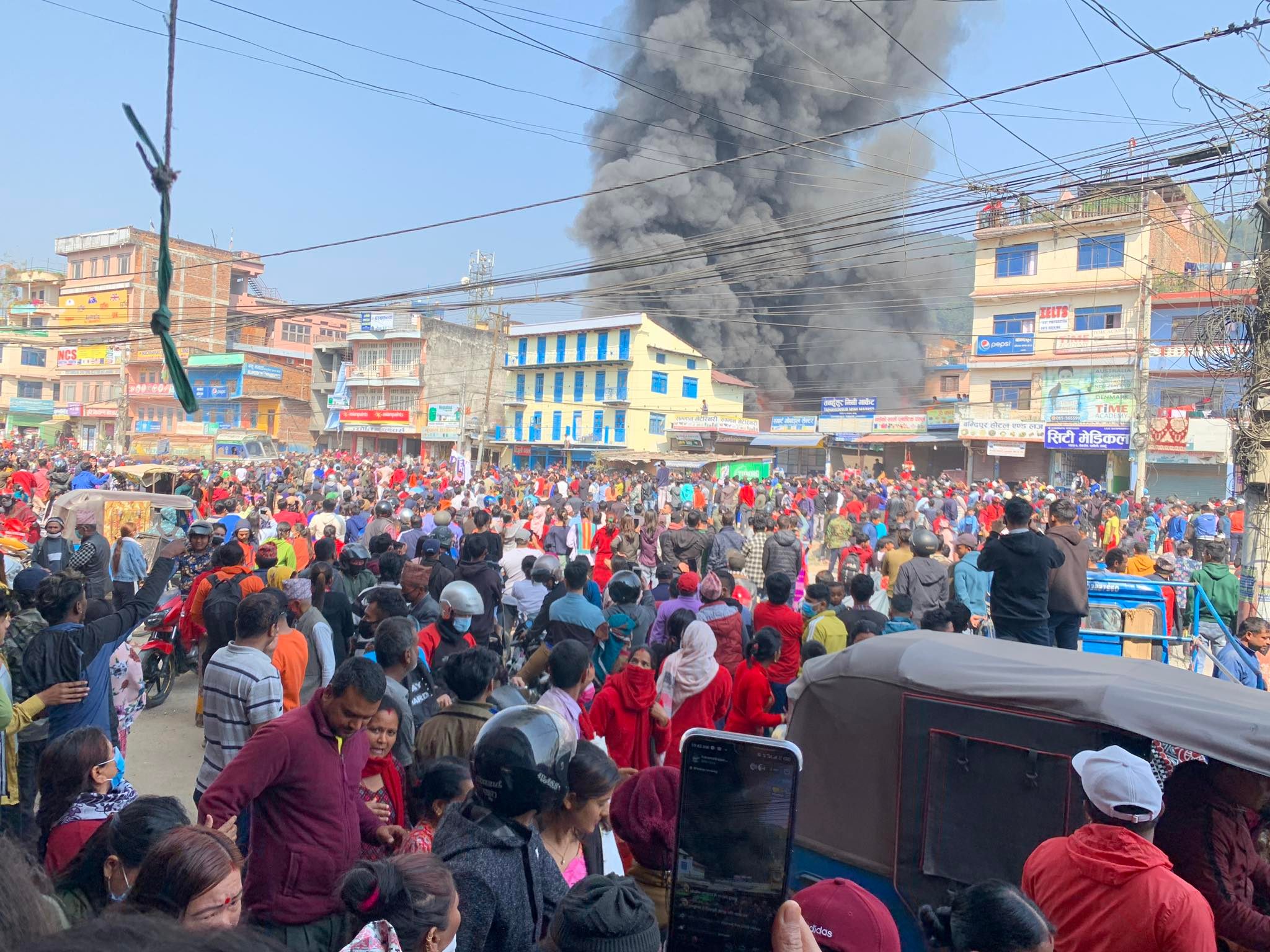 ‘बिहान १० १५ बाट आगोलागी सरुभउको हो । छिमेकी जिल्लाहरुकाट पनि दमकलहरु बोलाएर आगो नियन्त्रण गर्न लागेका छौँ’, सीडीओ अर्यालले बताए ।