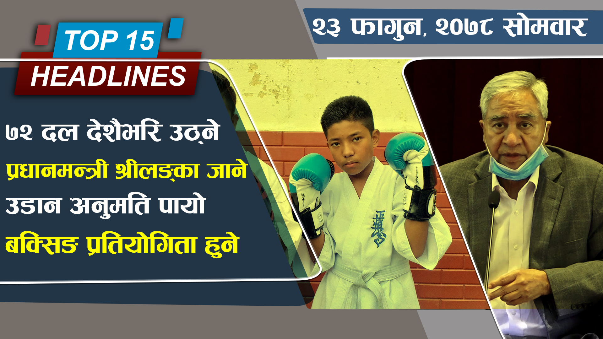 ३. बिमस्टेकको पाँचौँ शिखर सम्मेलनमा सहभागी हुन प्रधानमन्त्री शेरबहादुर देउवा चैत १६ गते श्रीलङ्का जाने, सम्मेलनमा नेपालसहित सातवटै देशका राष्ट्रप्रमुख सहभागी हुने ।