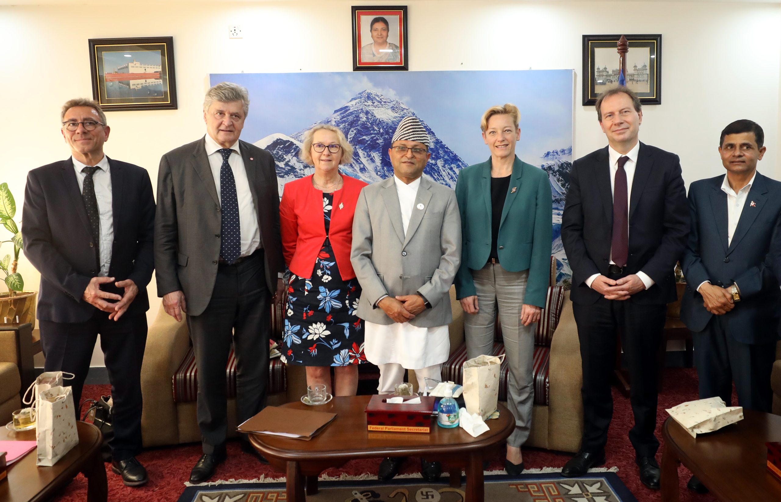 काठमाडौं । नेपाल भ्रमणमा रहेको फ्रान्सको संसदीय प्रतिनिधिमण्डल र राष्ट्रिय सभा अध्यक्ष गणेशप्रसाद तिमिल्सिनाबीच शिष्टाचार भेटवार्ता भएको छ । सिंहदरबारस्थित अध्यक्ष तिमिल्सिनाको कार्यकक्षमा बुधबार उनीहरूबीच भेटवार्ता भएको हो ।