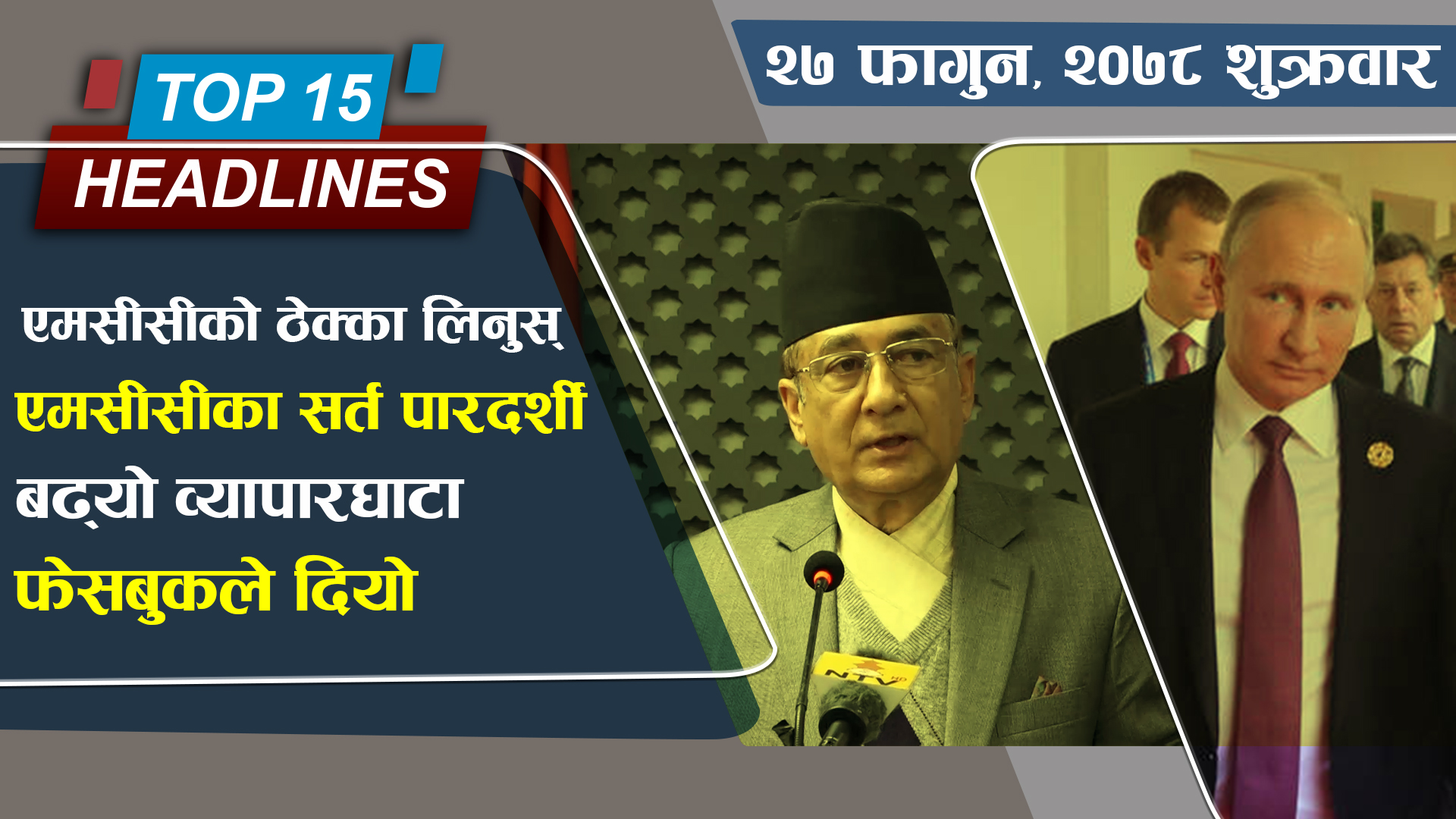 आज दिनभरका मुख्य १५ समाचार हेर्नुहोस् (भिडियोसहित)