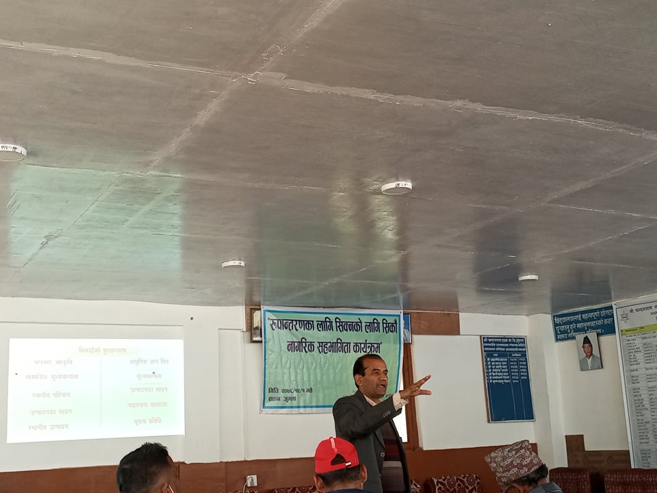 निमित्त नेपाल राष्ट्रिय आयोगका सचिवालयका सचिव गोविन्द अर्यालले समाजमा सकारात्मक रुपमान्तरणका विषयमा जिल्लाको वस्तुस्थितिको विषयमा जानकारी लिन कार्यक्रम आयोजना गरिएको बताए ।