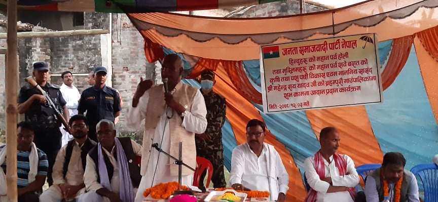 प्रेम र सद्भावको पर्व होली तथा मुस्लिम समुदायको शबे-बारात पर्वको शुभ अवसरमा बिहीबार ब्रह्मपुरी गापाको वडा नं. १, २ र वडा नं. ७ मोहनगंजमा जनता समाजवादी पार्टी, नेपालद्वारा आयोजित शुभकामना आदानप्रदान कार्यक्रमलाई सम्बोधन गर्दै सो कुरा बताएका हुन् ।