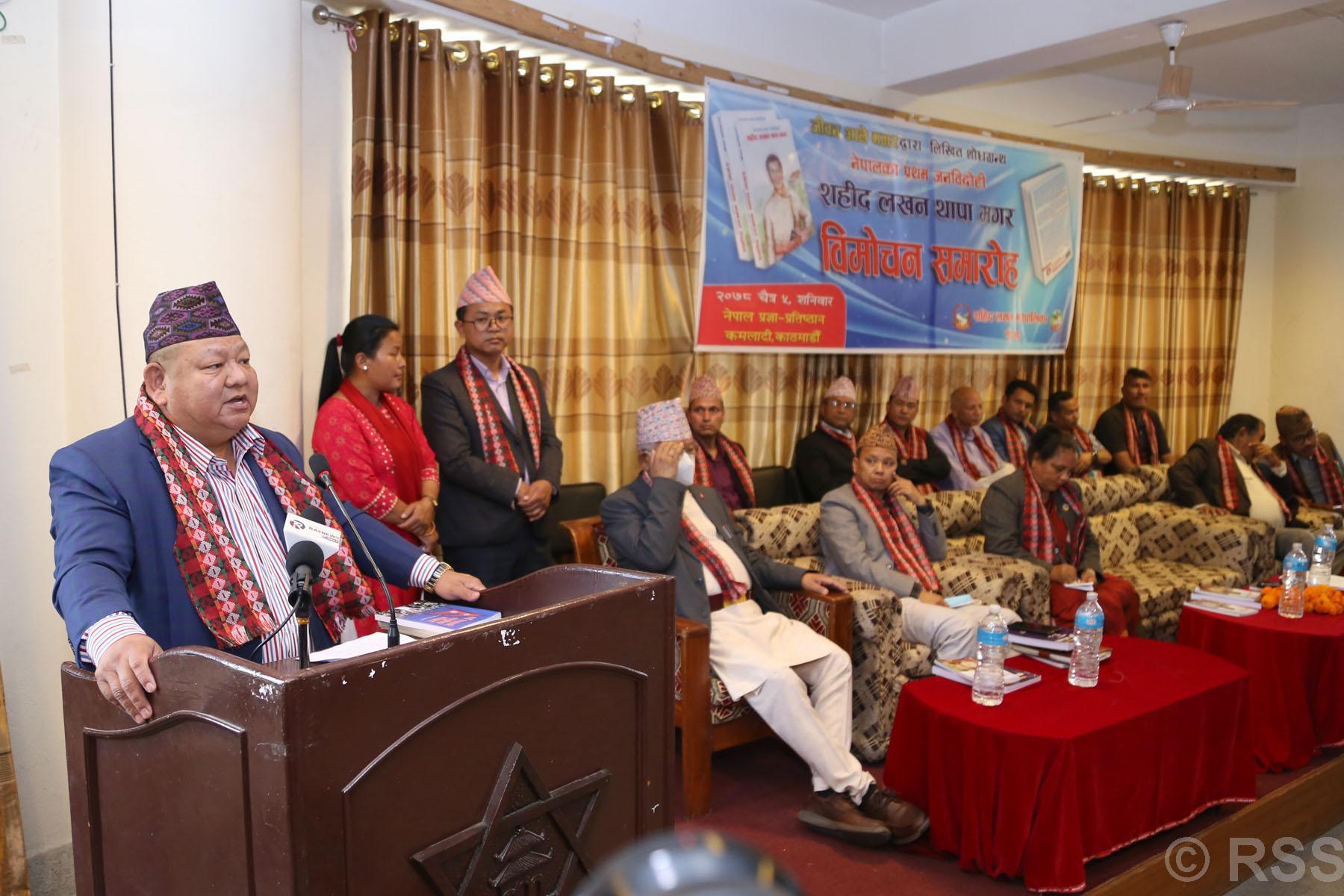 राजधानीको प्रज्ञा भवनमा आज आयोजित एक समारोह शहिद लखन गाउँपालिका गोरखाले प्रकाशन गरेको उक्त शोधग्रन्थ नेपाल सरकारका माननीय संस्कृति, पर्यटन, तथा नागरिक उड्डयनमन्त्री प्रेमबहादुर आलेले विमोचन गरे ।