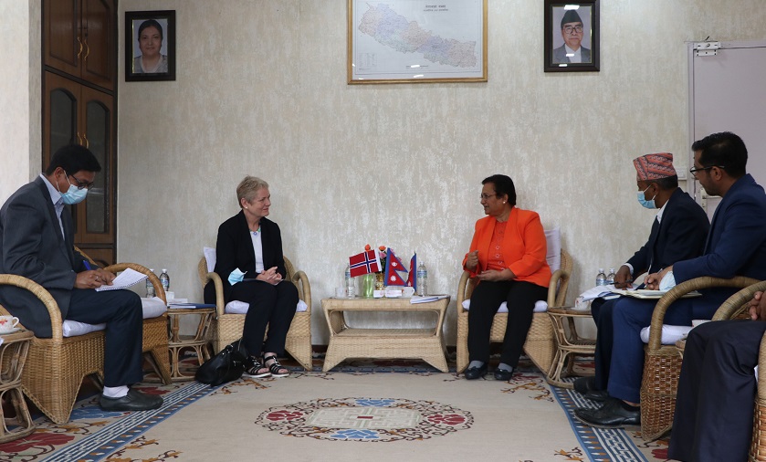 काठमाडौं । ऊर्जा, जलस्रोत तथा सिँचाइमन्त्री पम्फा भुसालसँग नेपालका लागि नर्वेका राजदूत टोरुन ड्रम्डालले शिष्टाचार भेट गरेका छन् ।