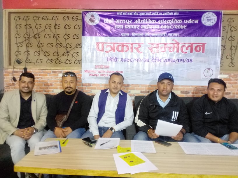 भक्तपुर । भक्तपुरमा छैटौँ भक्तपुर औद्योगिक साँस्कृतिक पर्यटन तथा व्यापार मेला २०७८ र, ०७९ हुने भएको छ । ‘औद्योगिक शान्ति नेपाल संस्था’ र मध्यपुर ब्वाइज व्याण्डको संयुक्त आयोजनामा मेला हुन लागेको हो । ‘नयाँ वर्ष नयाँ सोच युवाको लागि छ प्रगतिको स्रोत’ नाराका साथ २४ चैतदेखि ४ वैशाखसम्म मेला हुन लागेको हो ।