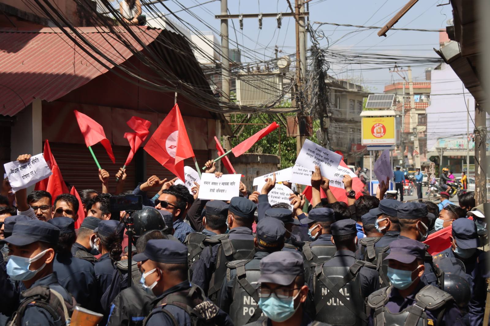 केन्द्रीय समितिको बैठक सुरु हुनुअघिदेखि सानेपास्थित केन्द्रीय कार्यालयमा नाराबाजीसहित प्रदर्शन भएको हो ।