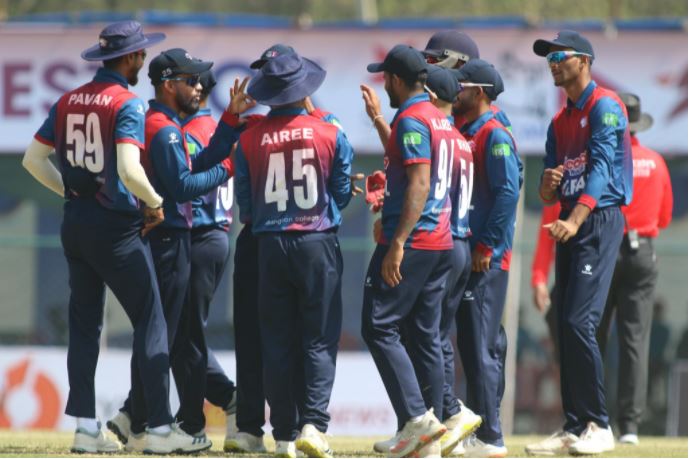 नेपालका आरिफ शेखले ३४, कुशल भुर्तेलले ३२, सोमपाल कामी र कमल सिंह ऐरीले समान १८ रन बनाउँदा भिम शार्कीले १७ रन बनाए ।