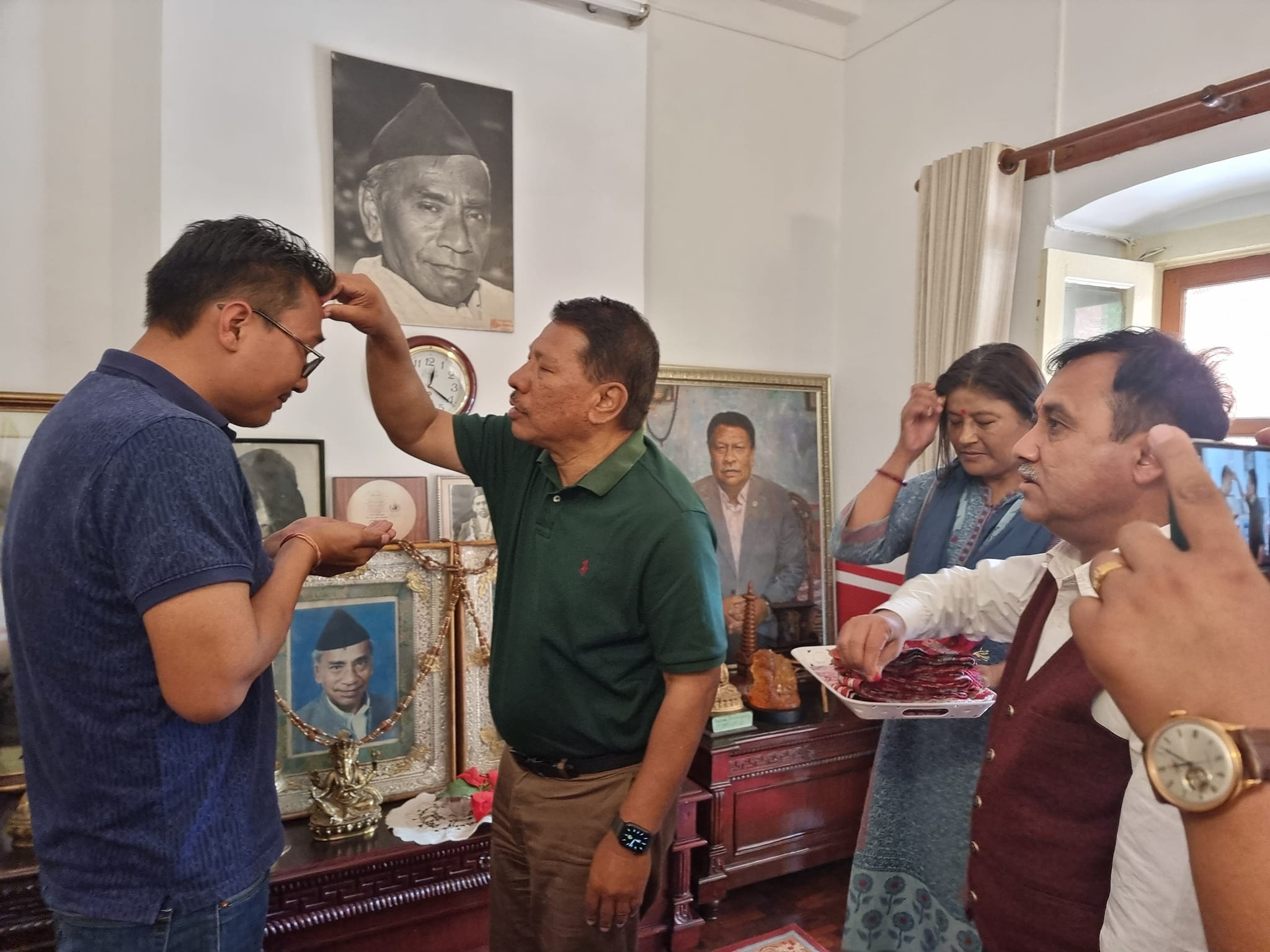 सभापति देउवाले ‘एकलौटी रुपमा मनोनित गरेको’ आरोप लगाउँदै कोइराला समूहले १४ चैतमा अलग्गै भेला बोलाएको दोस्रो दिन वरिष्ठ नेता रामचन्द्र पौडेलले निवासमा बोलाएर अध्यक्ष शेर्पालाई बधाई दिएका छन् । यसअघि शेर्पालाई निवासमा नै बोलाएर प्रकाशमान सिंहले पनि बधाई दिइसकेका थिए । उक्त बधाई कार्यक्रममा महामन्त्री विश्वप्रकाश शर्माको पनि उपस्थिति थियो ।