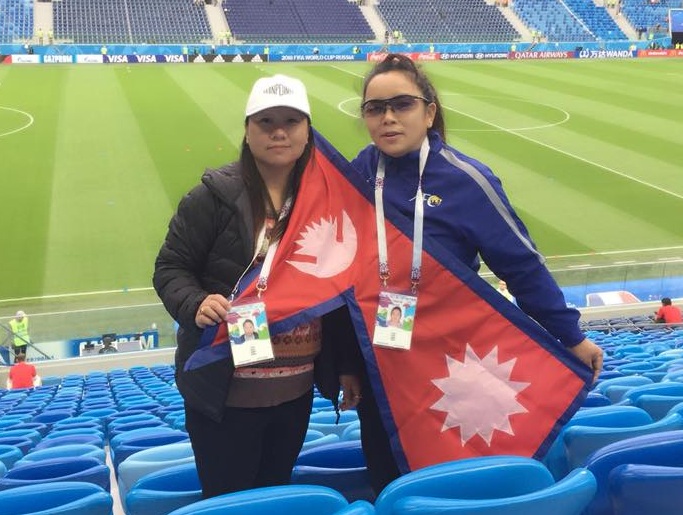 नेपालको एक सफल महिला खेलाडी पूर्व कप्तान जमूनाले लुज्निस्की स्टेडियममा नेपाली झण्डा फर्फराउँदै प्रत्यक्ष विश्वकपको मज्जा लिइन । नेपाली टिमका लागि महत्वपूर्ण २१ गोल गरेकी जमूना विश्वकप हेर्न रसिया गएकी हुन् ।