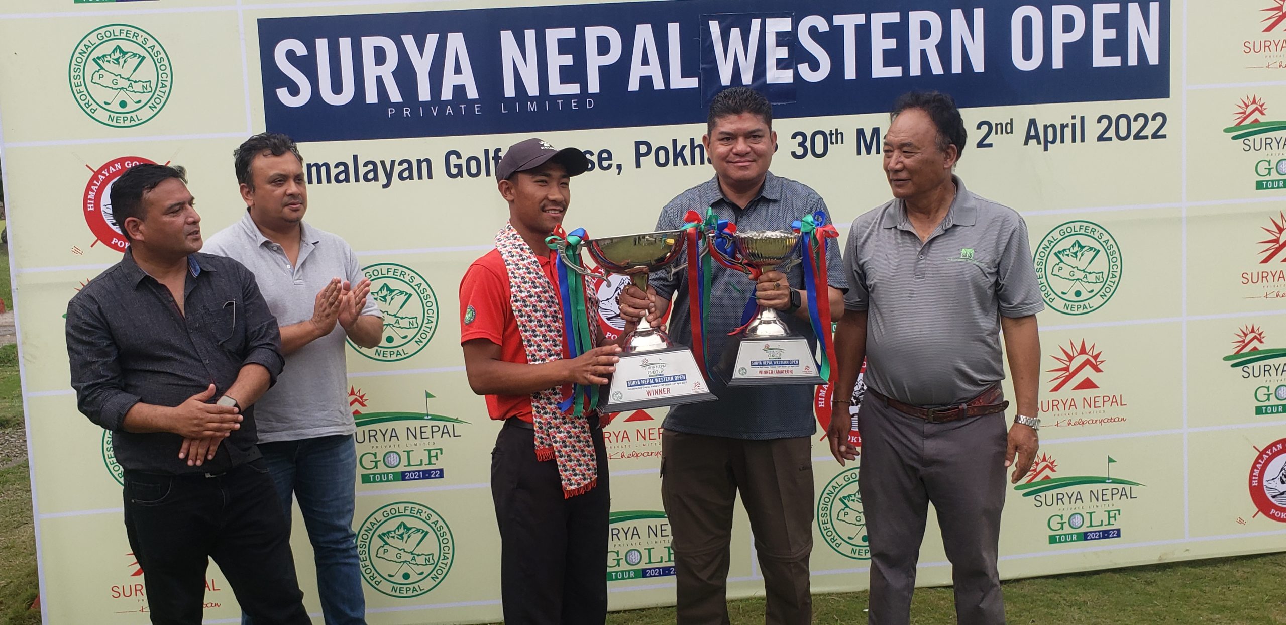 काठमाडौं । एमेच्योर सुभाष तामाङले सुर्य नेपाल वेस्टर्न अोपनको उपाधि जितेका छन् । सुर्य नेपाल गल्फ टुर २०२१-२२ अन्तर्गत सिजनको पाँचौं इभेन्टमा व्यावसायिक गल्फर जयराम श्रेष्ठलाई ४ स्ट्रोकले पछि पार्दै सुभाषले पहिलो पटक सुर्य नेपाल वेस्टर्न ओपनको उपाधि जितेका हुन् ।
