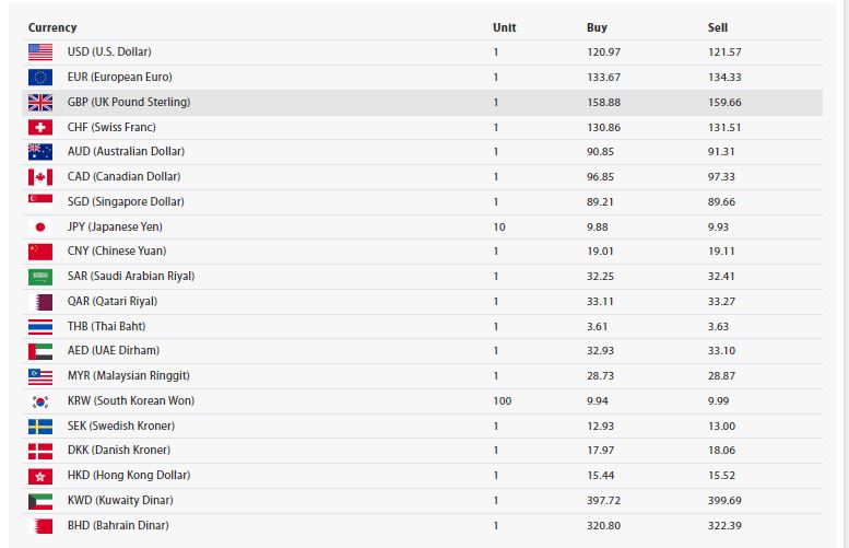काठमाडौं । नेपाल राष्ट्र बैंकले आइतबार लागि विदेशी मुद्राको विनिमयदर सार्वजनिक गरेको छ । राष्ट्र बैंकले अमेरिकी डलर एकको खरिददर अधिकतम १२० रुपैयाँ ९७ पैसा र बिक्रीदर १२१ रुपैयाँ ५७ पैसा कायम गरेको छ ।