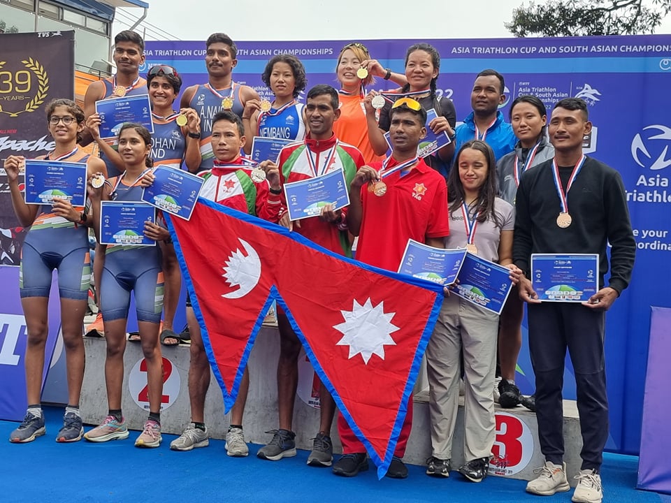 काठमाडौं । नेपालका हिमाल टमाटा र जापानकी हिराकु फुकुओका पोखरामा जारी एसिया ट्राईयाथलन कप तथा दक्षिण एशियन च्याम्पियनसिप अन्तर्गत भएको दुवाथलनको उपाधि जित्न सफल भएका छन् ।
