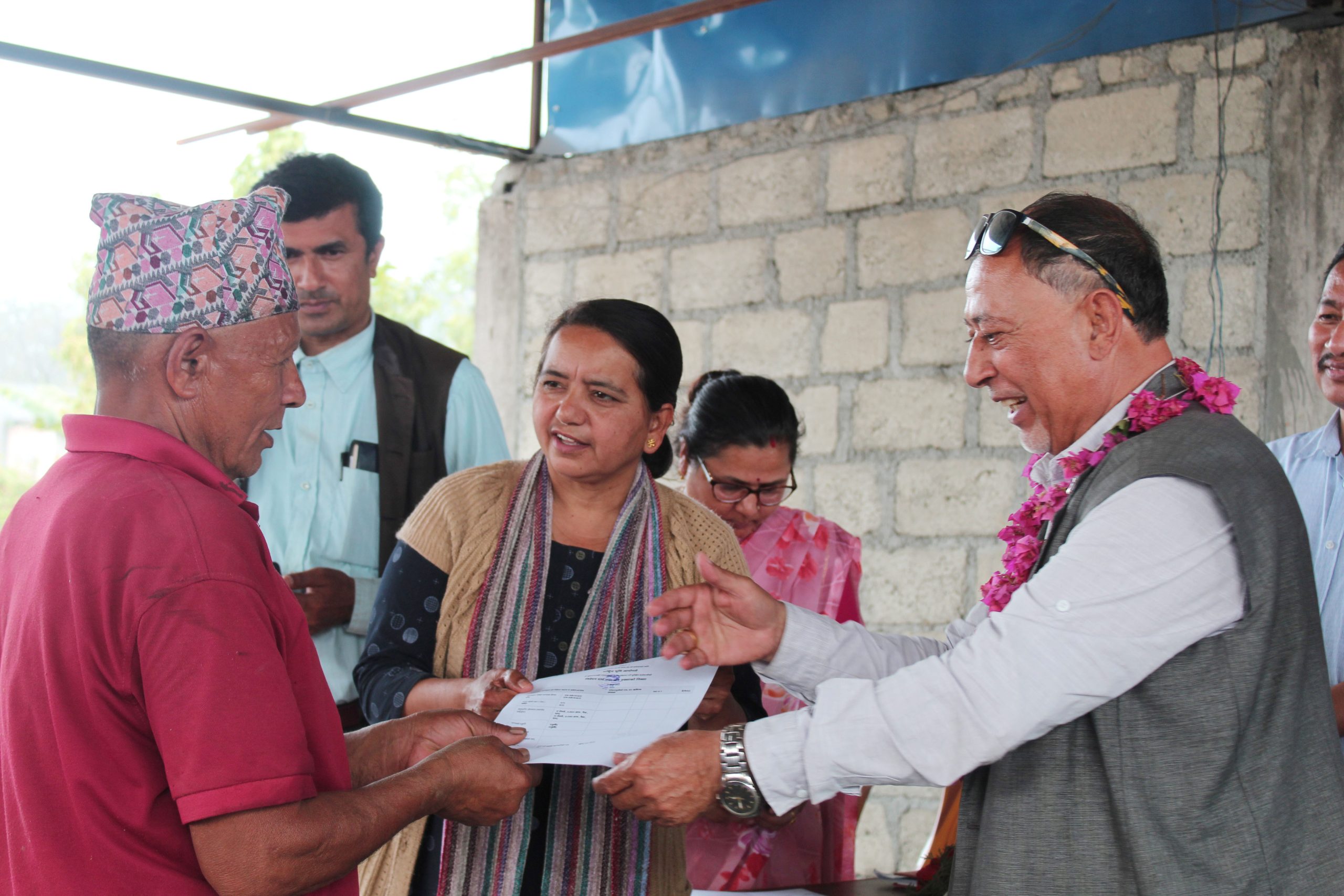 तनहुँ । शुक्लागण्डकी नगरपालिका–७ स्याउली बजारका टिकाराम शर्माले आइतबार जग्गाधनी लालपुर्जा प्राप्तिका लागि निस्सा प्राप्त गरे । राष्ट्रिय भूमि आयोगसँगको सहकार्यमा शुक्लागण्डकी नगरपालिकाले उनको हातमा निस्सा थमाइदिँदा पनि उनको मुहारमा खुसी छाएन । निस्सा पाएकाको जग्गा नाप जाँच हुने र लाालपुर्जा दिइने भन्दै गण्डकी प्रदेशसभा सदस्य आशा कोइराला, भूमि आयोग तनहुँका अध्यक्ष रामचन्द्र अधिकारी र शुक्लागण्डकीका मेयर किसान गुरुङले निस्सा बाँडेका थिए ।