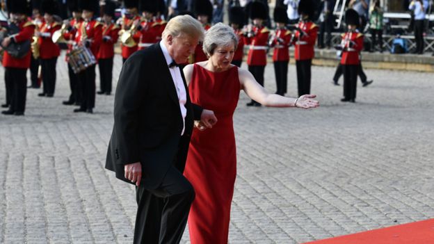 राष्ट्रपति भएपछि पहिलो पटक बेलायतको भ्रमण गरेका ट्रम्पसँग अमेरिका स्वतन्त्र व्यापार सम्झौता गर्न बेलायती प्रधानमन्त्री टेरिजा मेले प्रयास गरिरहेकी छिन् ।