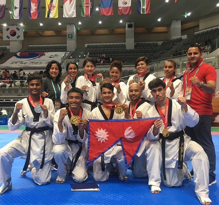 पोहाङ वल्र्ड युनिभर्सिटी तेक्वान्दो च्याम्पियनसिपको टिम इभेन्ट्समा नेपाली टोलीले स्वर्ण पदक जितेको हो । यता महिला टोलीले भने रजत पदक जितेको छ ।