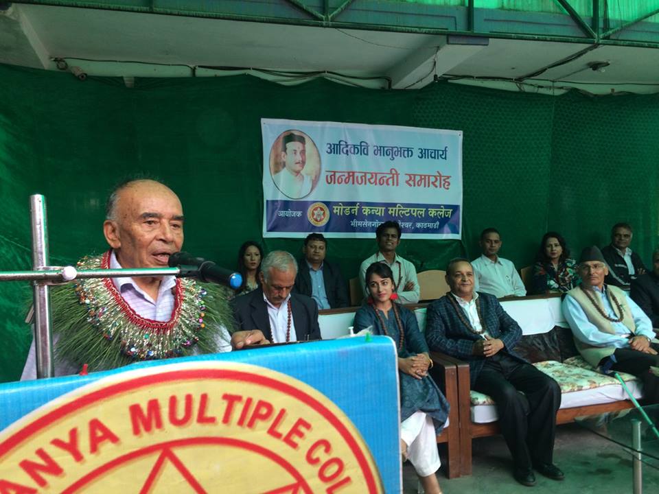 आदिकवि भानुभक्त आचार्यको २०५ औं जन्मजयन्ती समारोह विभिन्न कार्यक्रम गरी मनाइएको छ । काठमाडौंको पुरानो बानेश्वरस्थित भिमसेनगोलामा रहेको मोडर्न कन्या मल्टिपल कलेजमा पनि विभिन्न क्षेत्रमा क्रियाशील साहित्यकार तथा कविहरु गुन्जिए ।
