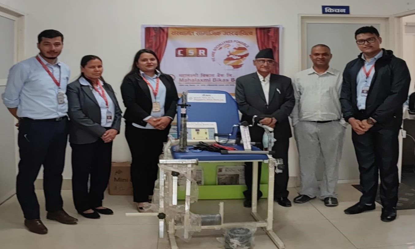 काठमाडौं । महालक्ष्मी विकास बैंक लिमिटेडको भाटभटेनी शाखाले संस्थागत सामाजिक उत्तरदायित्व कार्यक्रमअन्तरर्गत नक्साल, काठमाडौंमा अवस्थित नेपाल बाल संगठनलाई फिजियोथेरापी उपकरण हस्तान्तरण गरेको छ ।