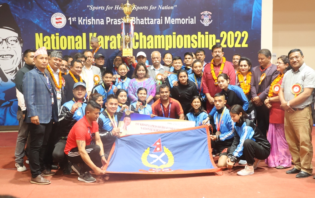 आठ स्वर्ण पदक सहित नेपाल पुलिस क्लब प्रथम कृष्णप्रसाद भट्टराई स्मृति राष्ट्रिय कराते प्रतियोगितामा शनिबार टिम च्याम्पियन बनेको छ । पुलिसले ४ कास्य पदक पनि जित्यो । टिम च्याम्पियन बनेसँगै पुलिसले १ लाख रुपैयाँ प्राप्त गरेको छ । प्रतियोगितामा ४ स्वर्ण, ५ रजत र ३ कास्य पदकका साथ त्रिभुवन आर्मी क्लब दोस्रो हुँदा ३ स्वर्ण, ५ रजत र ६ कास्य पदकका साथ एपिएफ तेश्रो भएको छ ।