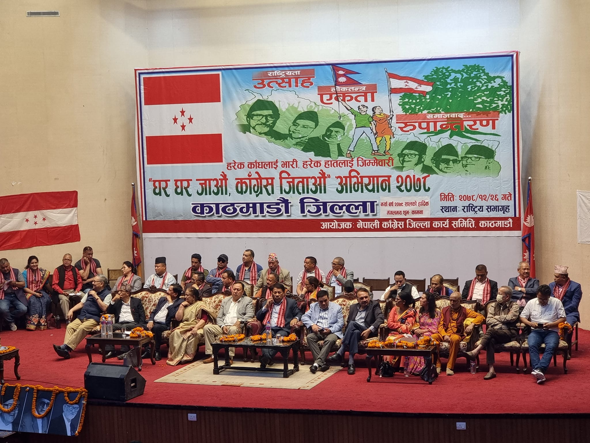 नेपाली कांग्रेस जिल्ला कार्यसमिति काठमाडौँले ‘घर–घर जाऔँ, कांग्रेस जिताऔँ’ अभियान २०७८ सुरु गरेको छ । आगामी वैशाख ३० गते हुने स्थानीय तहको निर्वाचन लक्षित सो अभियानको कांग्रेसका पूर्वउपसभापति प्रकाशमान सिंहले उद्घाटन गरे ।