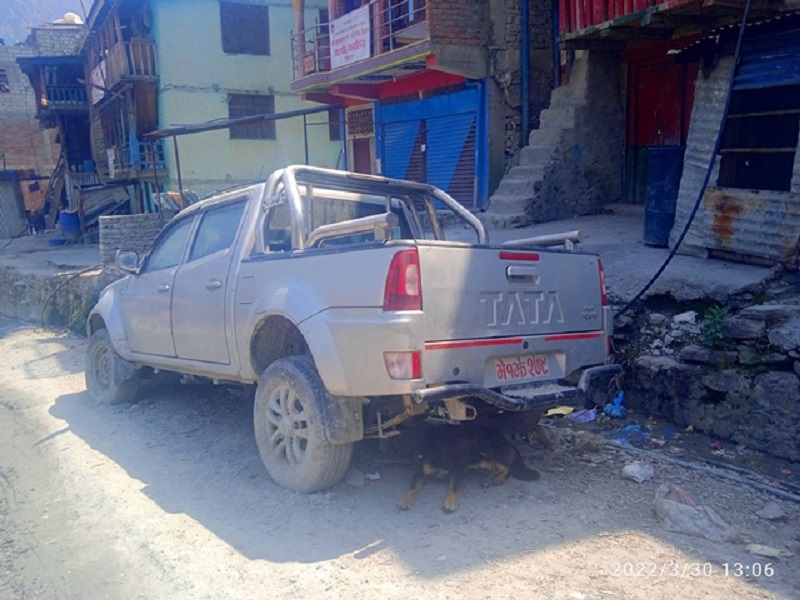 मुगु । जिल्लाको उत्तरी भेगमा पर्ने सोरु गाउँपालिकाको सरकारी गाडी गमगढीको न्युरोड बजारमा थन्किएको छ । सोरु गाउँपालिका अध्यक्ष लोकबहादुर शाहीले सवार गर्ने सरकारी गाडी न्युरोडको बजारमा थन्किएको हो ।