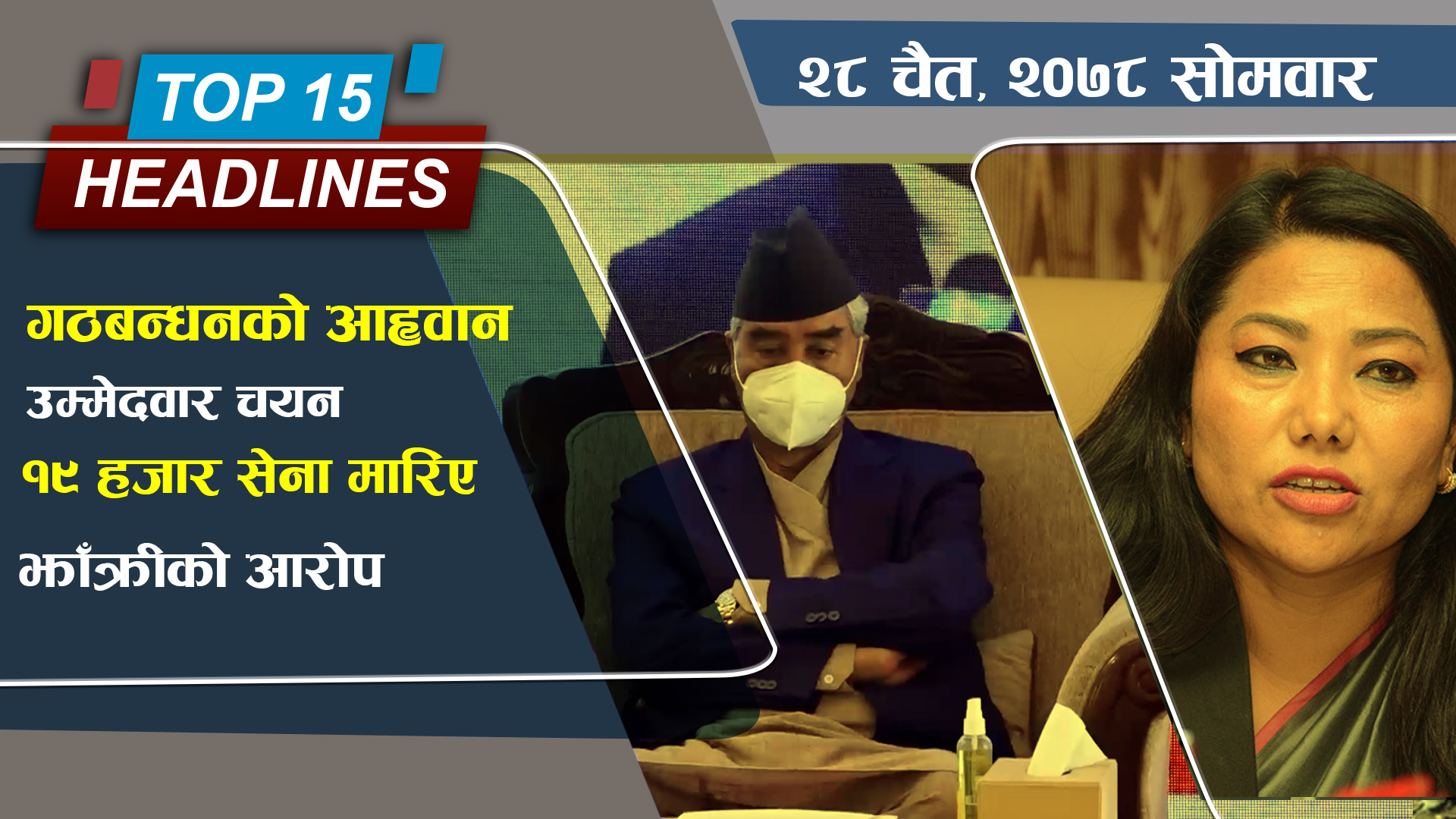 ३. प्रधानमन्त्री शेरबहादुर देउवाले १० महिने कार्यकालमा नयाँ कामको शुभारम्भ र शिलान्यास समेत गर्न नसकेको प्रमुख प्रतिपक्ष दल नेकपा एमालेका नेताहरूको आरोप, वर्तमान सरकारले राष्ट्रको ढुकुटी सिध्याउने काम मात्रै गरेको भन्दै कटाक्ष ।