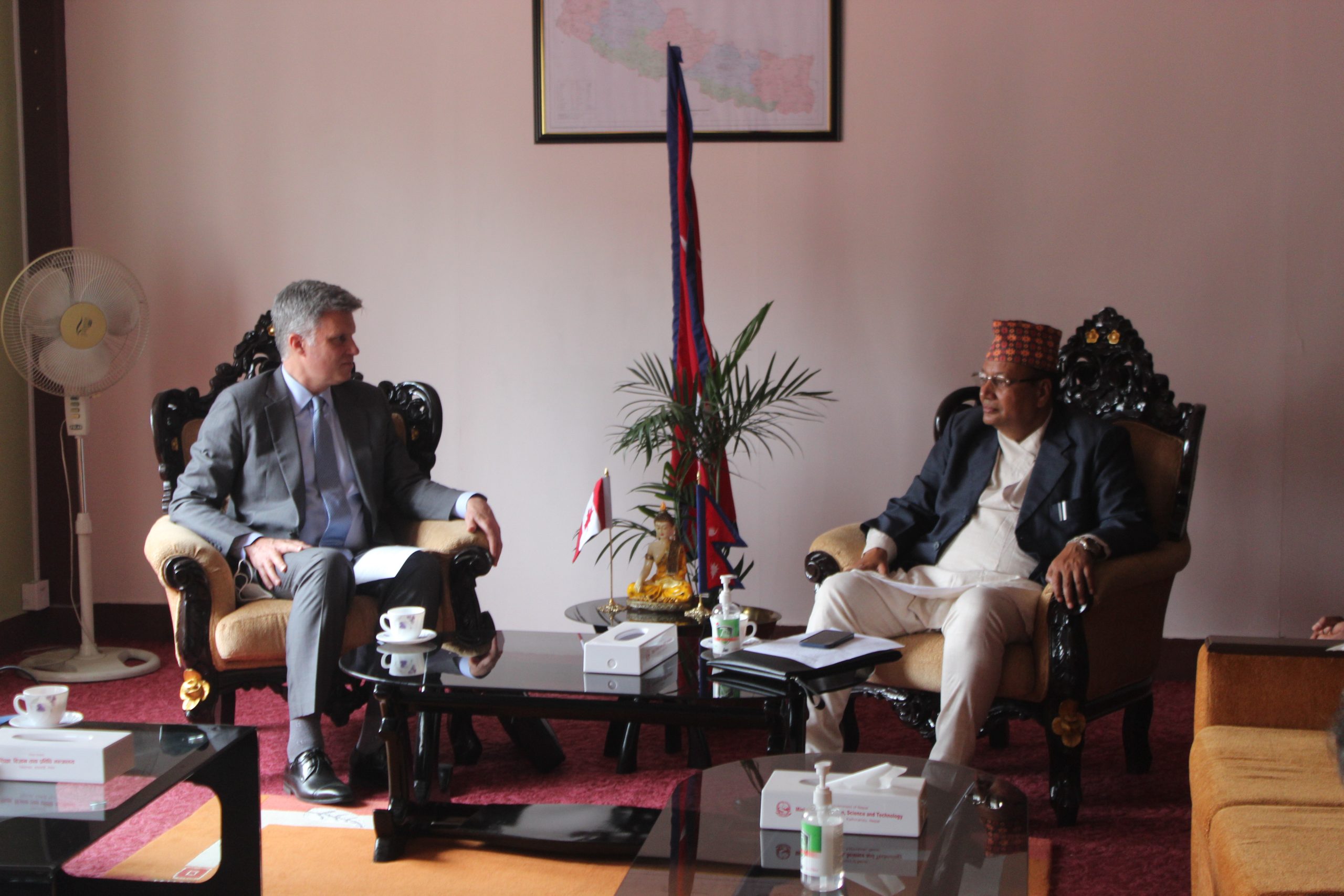 काठमाडौं । शिक्षा, विज्ञान तथा प्रविधिमन्त्री देवेन्द्र पौडेल र क्यानडाका गैरआवशीय राजदूत क्यामेरन डिन मकाईसँग शिष्टचार भेटवार्ता भएको छ ।
