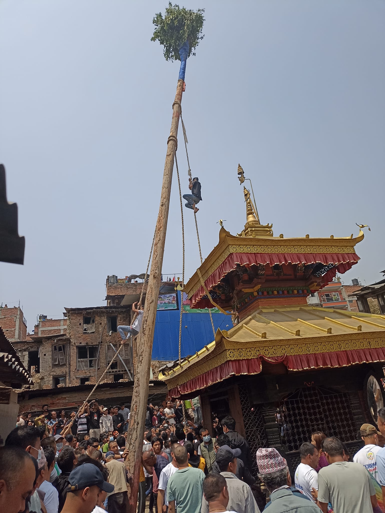 भक्तपुर । बिस्का जात्राको क्रममा बुधबार दिउँंसो पोटरी स्क्वायरमा हात नभएको लिंगो (नेपाल भाषामा ल्योसिंद्यो) ठडाइएको छ । प्रत्येक वर्ष वर्षको अन्तिम दिन दिउँंसो यहाँं यसरी नै लिंगो उठाउने गरिन्छ ।