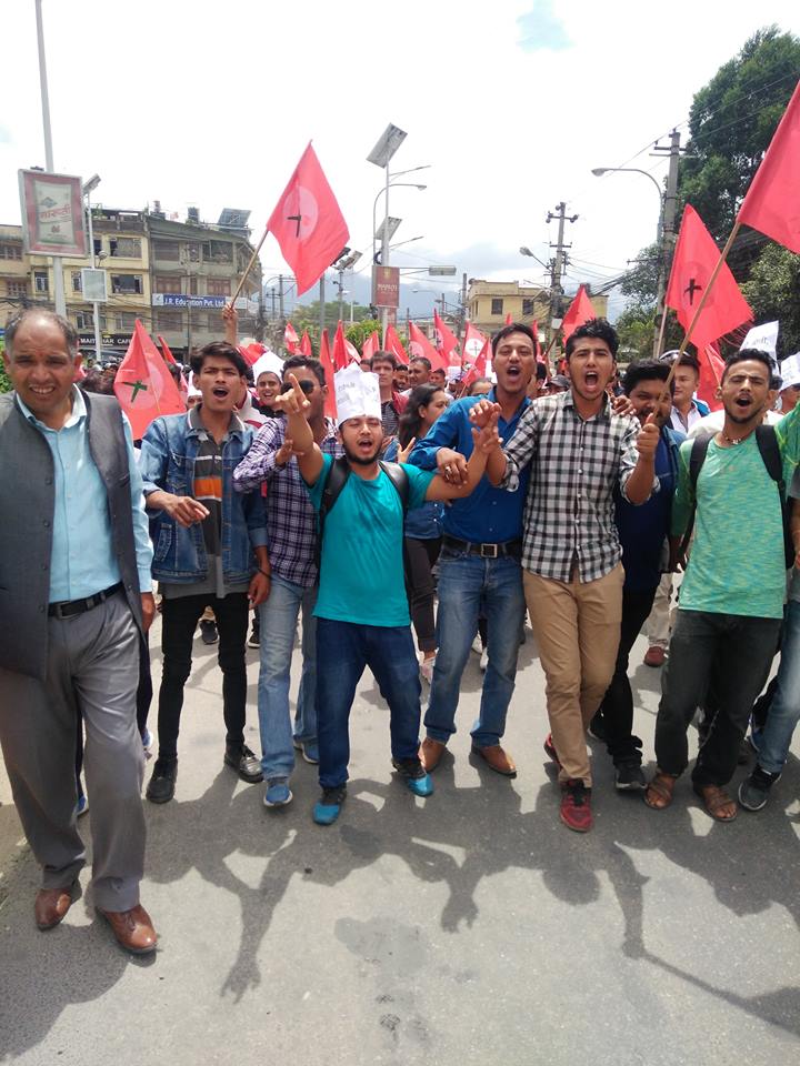 सरकारले अधिनायकवाद लाद्न खाजेको आरोप लगाउँदै नेपाली कांग्रेसको भातृ संगठन नेविसंघले मंगलबार राजधानीमा प्रदर्शन गरेको छ ।