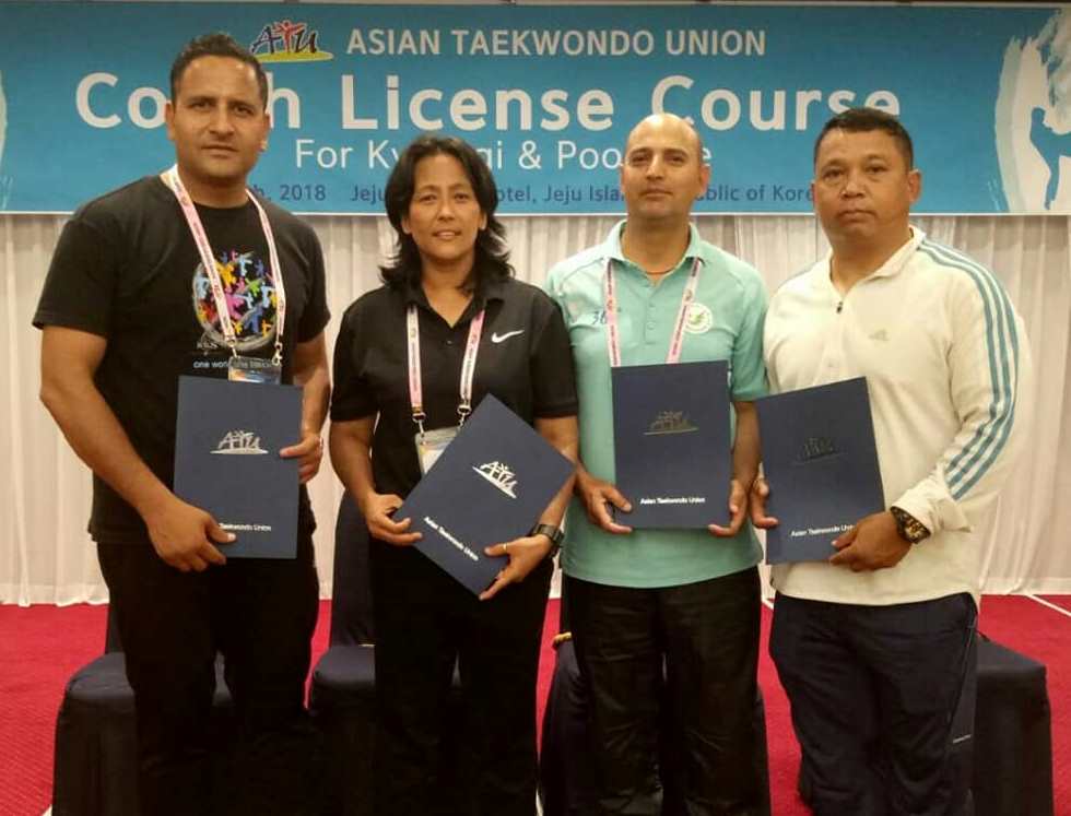 एसियन तेक्वान्दो युनियनद्वारा आयोजना भएको प्रशिक्षक लाइसेन्स कोर्समा नेपालका ४ प्रशिक्षकले पूरा गरेका हुन् ।