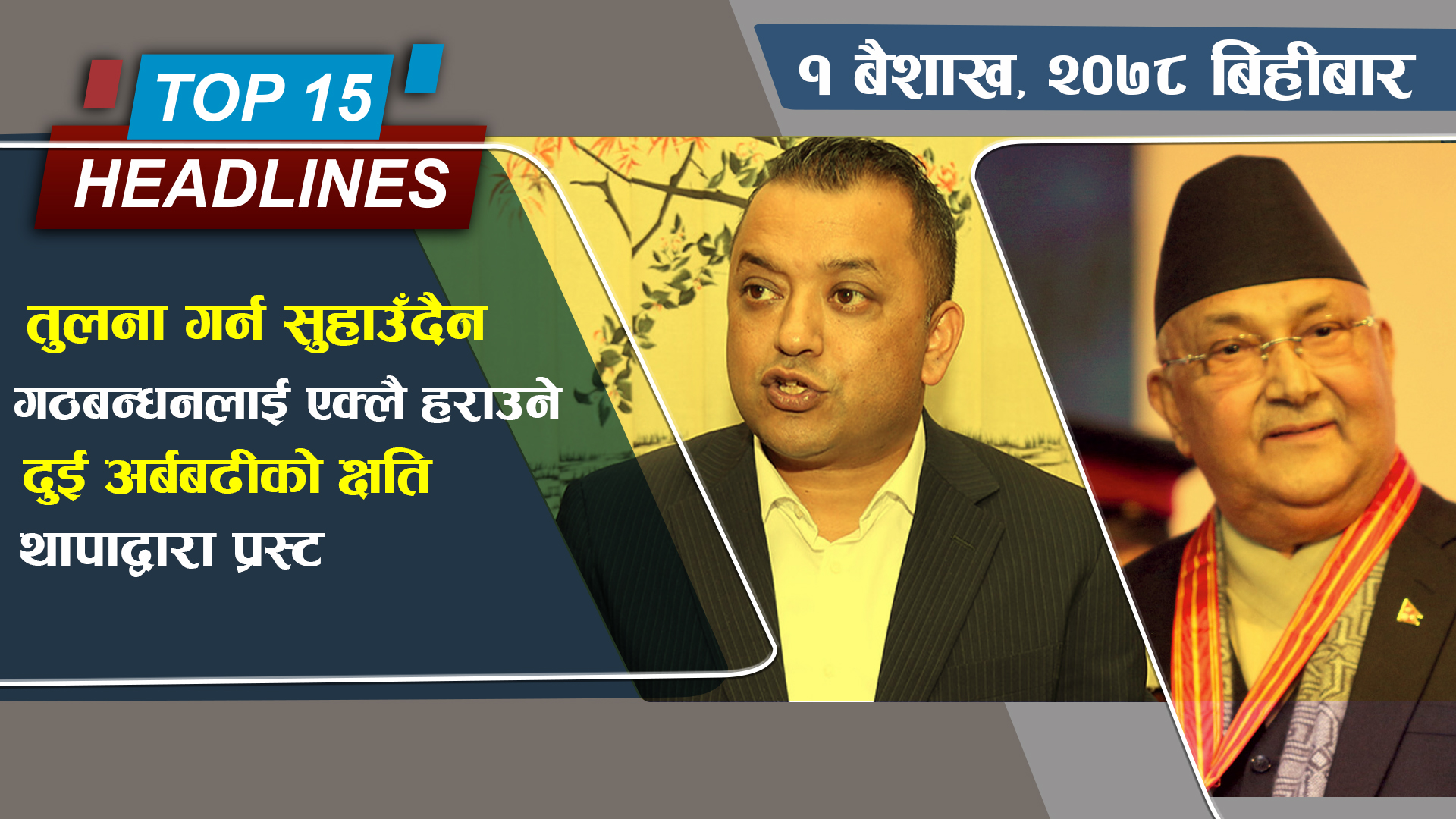 १. आजबाट नयाँ वर्ष विक्रम संवत् २०७९ को आरम्भ, राष्ट्रपति, उपराष्ट्रपति र प्रधानमन्त्रीले दिए शुभकामना सन्देश ।