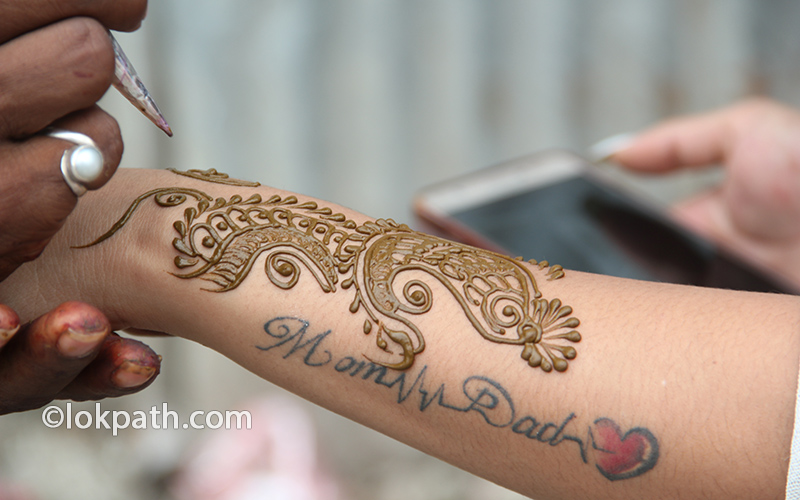 काठमाडौंको मुटु मानिने असन, न्यूरोड, जमलतिर मेहन्दी लगाउनेहरु प्रशस्तै भेटिन्छन् ।