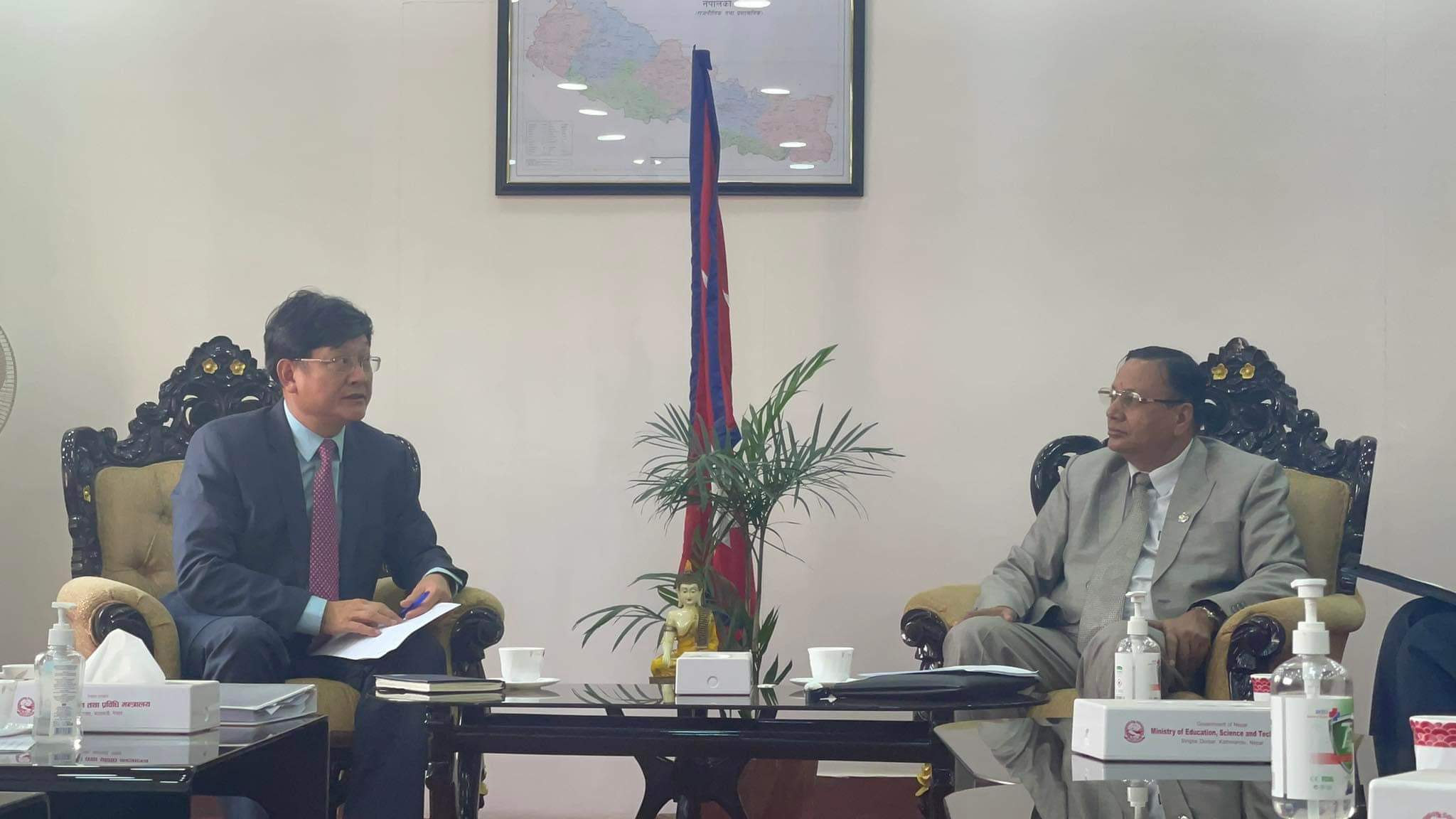 काठमाडौं । शिक्षा, विज्ञान तथा प्रविधि मन्त्री देवेन्द्र पौडेल र एसियाली विकास बैंकका उपाध्यक्ष सिजिङ चैनबीच भेटवार्ता भएको छ । सोमबार शिक्षा मन्त्रालयमा मन्त्री पौडेल र उपाध्यक्ष चैनबीच भेटवार्ता भएको हो ।