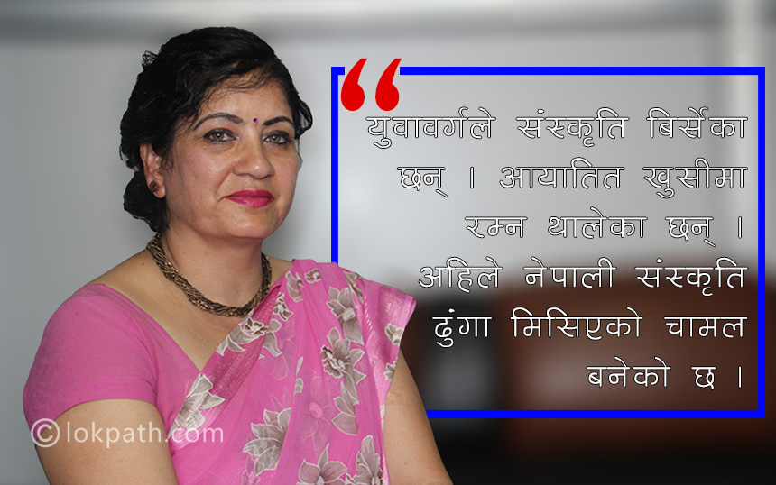 यही संस्कृति र यसका दीर्घकालीन परिवर्तनका बारेमा लोकपथकर्मी प्रेरणा तिमल्सिनाले संस्कृतिविद् सविता प्रसाईंसँग गरेको कुराकानीलाई यहाँ प्रस्तुत गरिएको छ :