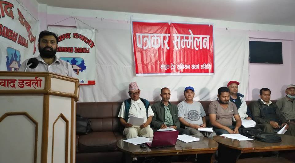 शुक्रबार संवाद डबलीमा विप्लव नेतृत्वको नेपाल कम्युनिस्ट पार्टी निकट अखिल नेपाल क्रान्तिकारी ट्रेड युनियन महासंघ, क्रान्तिकारी माओवादी निकट अखिल नेपाल क्रान्तिकारी ट्रेड युनियन महासंघ, नेकपा (माओवादी केन्द्र) निकट क्रान्तिकारी ट्रेड युनियन महासंघ, नेपाल र नेकपा (माले) निकट प्रगतीशिल स्वतन्त्र ट्रेड युनियन महासंघ (पिकोण्ट)ले संयुक्त पत्रकार सम्मेलन गरेर नयाँ आन्दोलनको घोषणा गरेका छन् ।