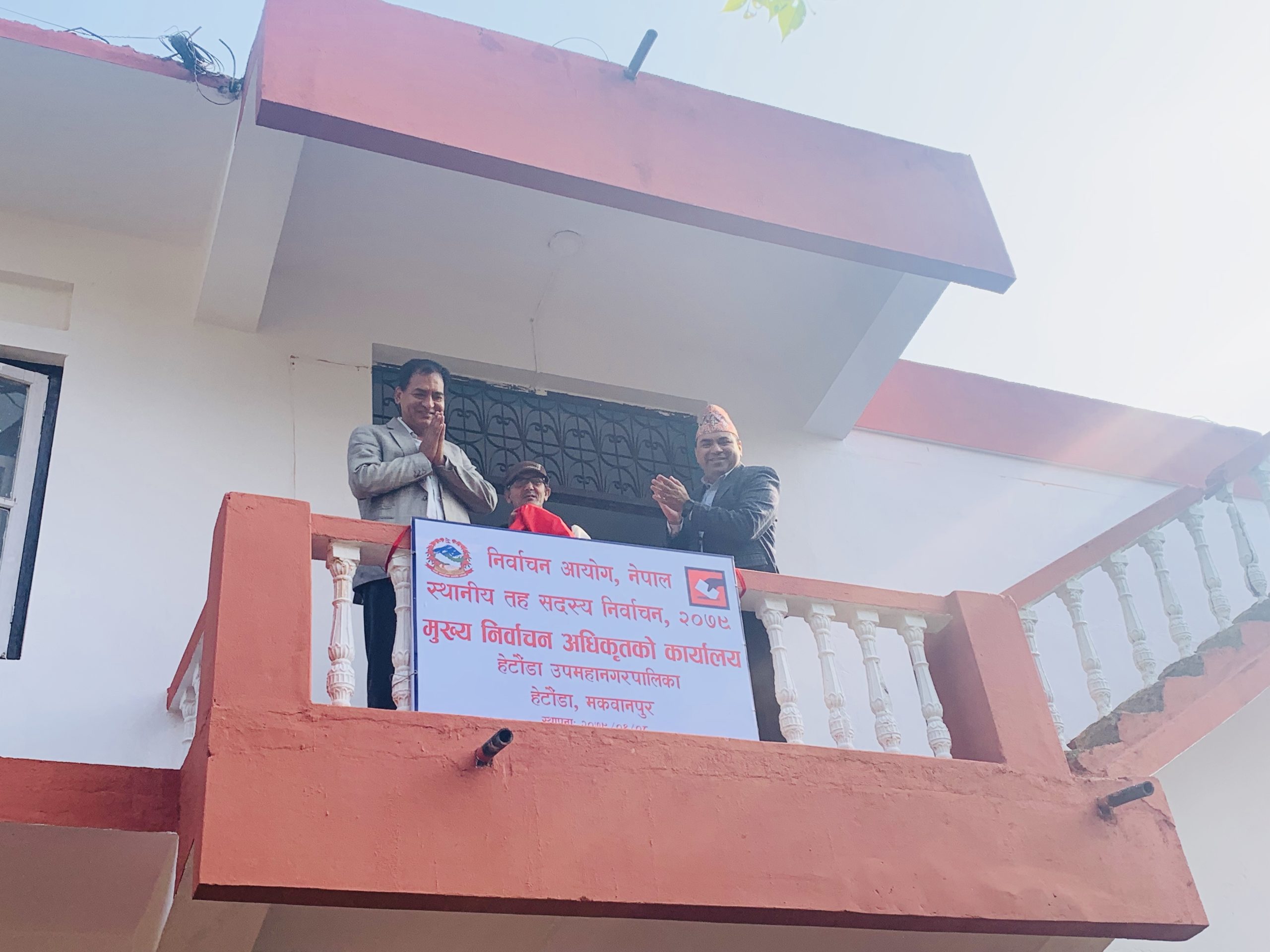 स्थानीय तहको निर्वाचनका लागि मकवानपुरमा बिहीबार निर्वाचन अधिकृतको कार्यालय उद्घाटन गरिएको हो । यसैबीच प्रमुख जिल्ला अधिकारी भरतमणि पाण्डेले राजनीतिक दलहरूसँग सहकार्यको लागि आग्रह गरेका छन् । सबै निकायको सकारात्मक पहलले नै निर्वाचन सम्पन्न गर्न सकिने भन्दै उनले साथ र सहयोगको अपेक्षा रहेको बताए ।