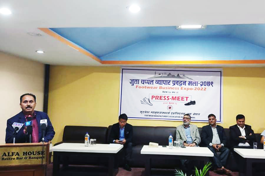 फुटवेयरले मंगलबार काठमाडौंमा पत्रकार सम्मेलन आयोजना गरी स्वदेशी उत्पादित जुत्ताको प्रयोग बढाउनको लागि तथा जुत्ता चप्पल व्यापार प्रवर्द्धन गर्नको लागि मेलाको आयोजना गर्न लागेको जानकारी दिएको हो ।