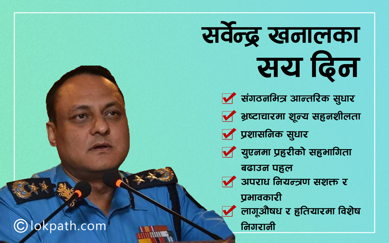 वर्तमान आइजीपी सर्वेन्द्र खनालमाथि खोट लगाउनुपर्ने कुनै ठाँउ नै छैन । उनी विगतमा पनि राम्रो छवि बनाएर अगाडि आएका अफिसर हुन् । उनको त्यही छविले त संगठनको नेतृत्व लिन झन् सहज बनायो । आफैमा काबिल र इमान्दार वर्तमान संगठन प्रमुख खनालको सय दिनको कार्यकाल शुभ नै देखिएको छ ।
