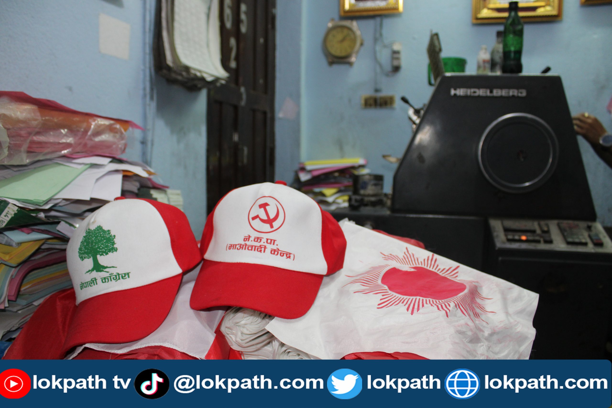 विगत एक सातादेखि दैनिकरुपमा प्रेसहरु पार्टीका झण्डा पमप्लेट, ब्यानर टिसर्ट बनाउन व्यस्त छन् । धेरैजसो प्रिन्टहरुले निर्वाचनका लागि मात्रै भनेर कर्मचारी थप पनि गरेका छन् ।