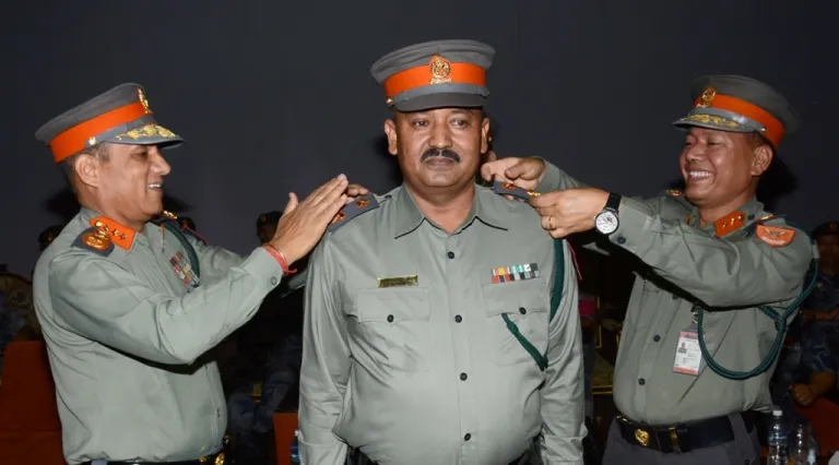 काठमाडौं । सशस्त्र प्रहरी महानिरीक्षक पुष्पराम केसीले सशस्त्र प्रहरी बल नेपाल प्रधान कार्यालय हल्चोक स्वयम्भूमा आज आयोजित एक समारोहबीच सशस्त्र प्रहरी निरीक्षकबाट सशस्त्र प्रहरी नायव उपरीक्षक पदमा पदोन्नति भएका ७२ जना अधिकृतलाई दर्ज्यानी चिन्ह प्रदान गरेका छन् ।