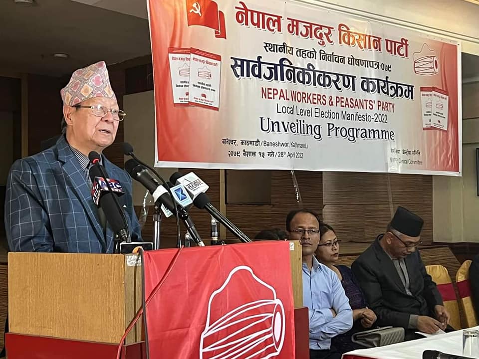 काठमाडौं । नेपाल मजदुर किसान पार्टी ९नेमकिपा० ले स्थानीय निकाय चुनावको घोषणापत्र सार्वजनिक गरेको छ । बिहीबार राजधानीमा पत्रकार सम्मेलन गरी घोषणापत्र सार्वजनिक गरिएको हो ।
