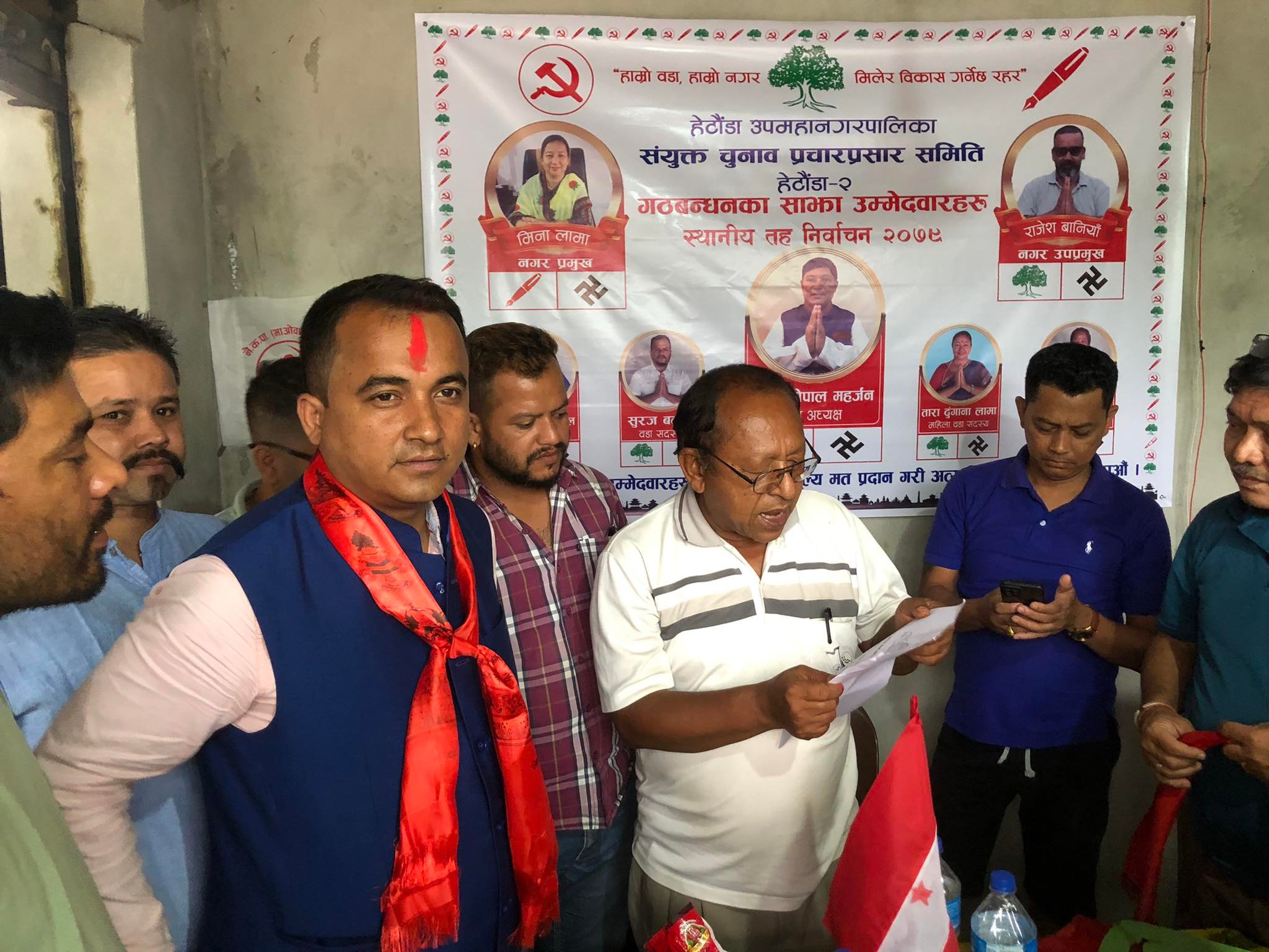 हेटौंडा । हेटौंडा उपमहानगरपालिका- २ को वडा अध्यक्षमा उम्मेदवारी दिएका रवीन्द्र घिमिरेले उम्मेदवारी फिर्ता लिएका छन् ।