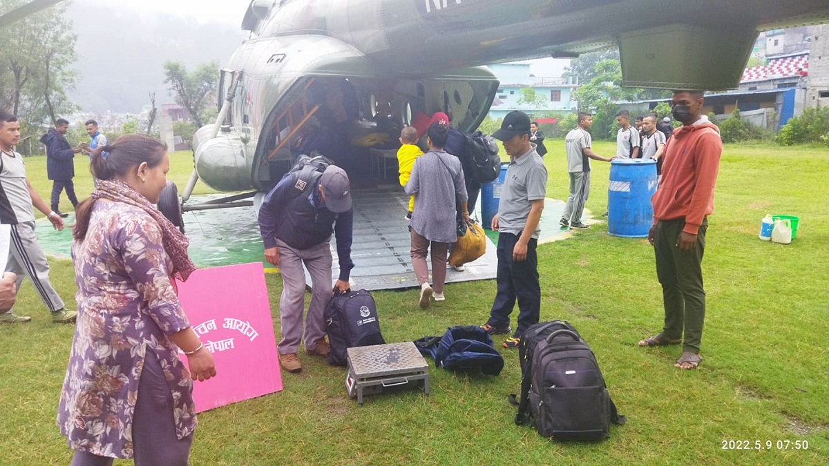 सोमबार बिहान सेनाको हेलिकप्टरमार्फत छाङ्गरु र तिंकरका मतदान केन्द्रका लागि मतपत्र, मतदाता परिचयपत्रलगायत निर्वाचन सामग्रीका साथै कर्मचारी र सुरक्षाकर्मीहरुलाई पठाइएको छ ।
