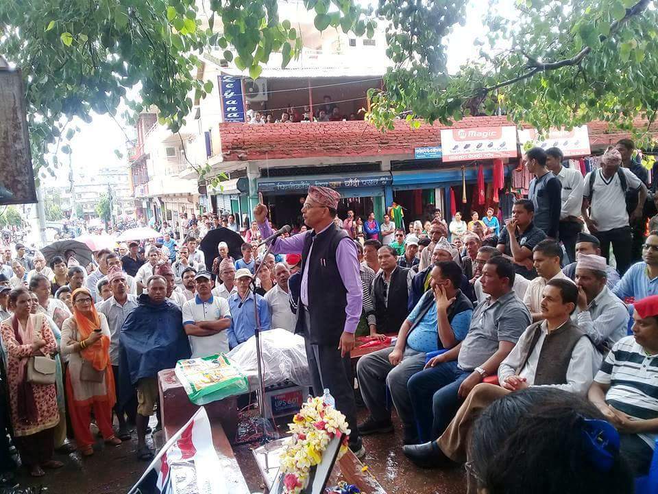 कार्यक्रममा पूर्व संचार राज्यमन्त्री तप्तबहादुर विष्टले जनताको लोकतान्त्रिक अधिकारमाथि वर्तमान कम्युनिष्ट सरकारले धावा बोलेको आरोप लगाए । उनले सरकार अधिनायकवादतर्फ अघि वढ्दै गए कांग्रेस चुप लागेर नबस्ने चेतावनी समेत दिए । महंगी, भ्रष्टाचार र कालोबजारी बढ्दै गएकोमा उनले त्यसप्रति सरकार मुकदर्शक भएर बसेको आरोप लगाए ।