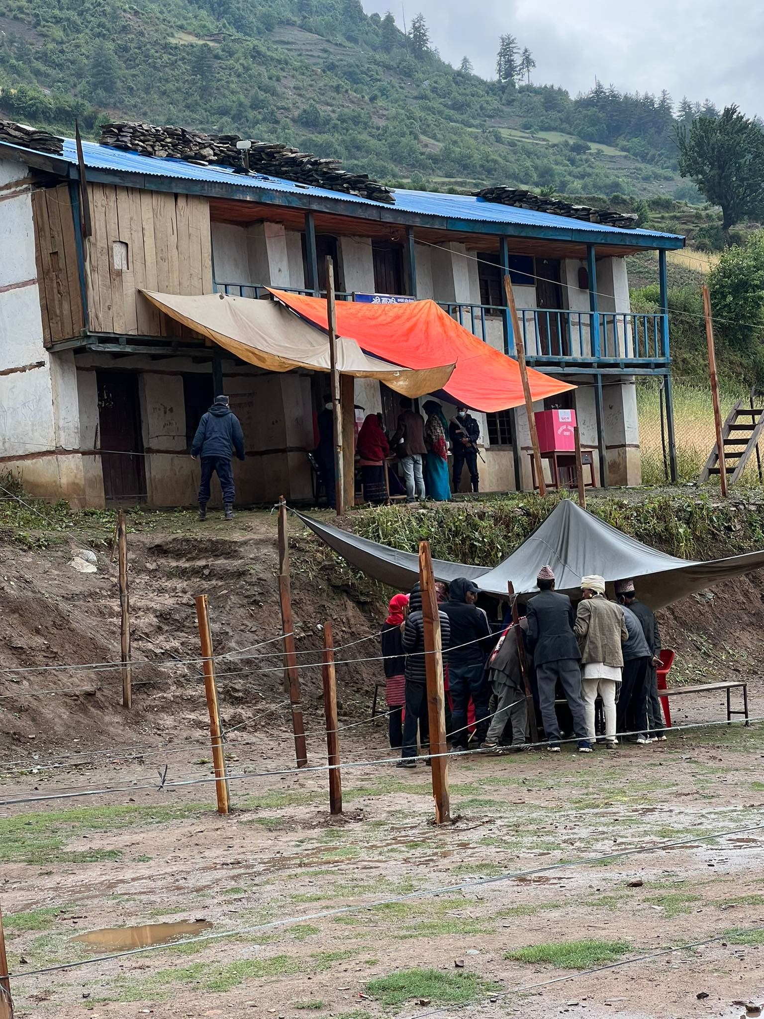 हिमाली जिल्ला मुगुमा वर्षा भएकाे छ । तर, वर्षाका बीच ओत लागेर मतदान भइरहेकाे छ ।