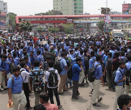 ढाका: विगत चार दिन देखि बंगलादेशको राजधानी ढाकाको सडकमा उत्रिएका विद्यार्थीहरूका कारण यातायात पुरै अवरुद्ध भएको छ ।