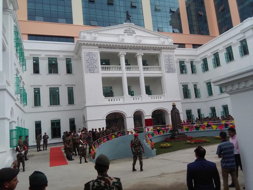 काठमाडौं । नेपाली सेनाको न्यूरोड महांकालस्थित त्रि–चन्द्र मिल्ट्री अस्पताल आजबाट सञ्चालनमा आएको छ । प्रधानसेनापति राजेन्द्र क्षत्रीले अस्पताल भवनको उद्घाटन गरेका हुन ।