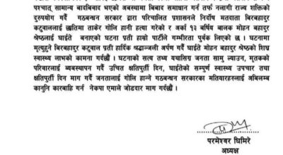 सामाजिक दल संसदीय ब्यवस्थामा दलालले राज्यसत्ताको चरम दुरुपयोग गरि निर्दोष नागरिकको हत्या गरेकोमा घोर भत्सर्ना गर्दै घटनाको छानबिन गरि दोषीलाई कडा कारबाही गर पिडितलाई क्षतिपूर्ति दिन माग गर्दै नेकपा विप्लवका जिल्ला सेक्रेटरी लक्ष्मण पौडेल, ईन्चार्ज बिबेक कुमालले प्रेस बिज्ञप्ती जारी गरेको छ । स्थितिलाई नियन्त्रणमा लिन मतदानस्थल सुरक्षार्थ खटिएका नेपाल प्रहरीको टोलीले गोली फायर गरेको जिल्ला प्रहरी कार्यालय उदयपुरका एसपी सुवासचन्द्र बोहोराले बताए ।