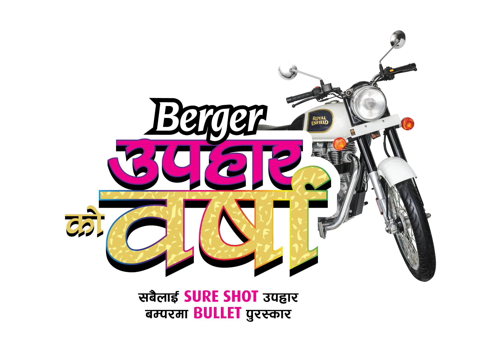 यस योजनाअन्तर्गत, ७५ हजार मूल्य बराबरको बर्जर पेन्टसको कुनैपनि इमल्सन उत्पादनहरु खरिद गरेमा ग्राहकले स्योर सट पुरस्कार जित्न सक्नेछन् । लक्की ड्र मार्फत एक भाग्यशाली विजेताले बम्परमा रोयल एनफिल्ड बुलेटको जित्न सक्नेछन् ।