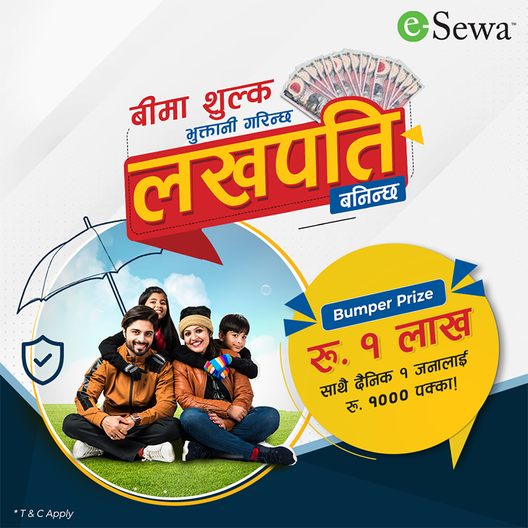 काठमाडौं । नेपालको भुक्तानी सेवा प्रदायक इसेवाले “बीमाशुल्क भुक्तानी गरिन्छ, लखपति बनिन्छ” योजना सार्वजनिक गरेको छ । इसेवाले बीमितहरुले घरमै बसेर बीमा शुल्क भुक्तानी गर्न प्रोत्साहन मिलोस् भन्ने उदेश्यले यो योजना सार्वजनिक गरेको हो ।